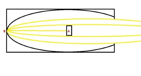 A에서 레이저를 발사하는데, 레이저가 빛을 100을 발생시키면 그와 동일한 양의 빛이 내부 반대편으로