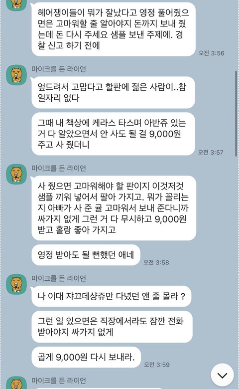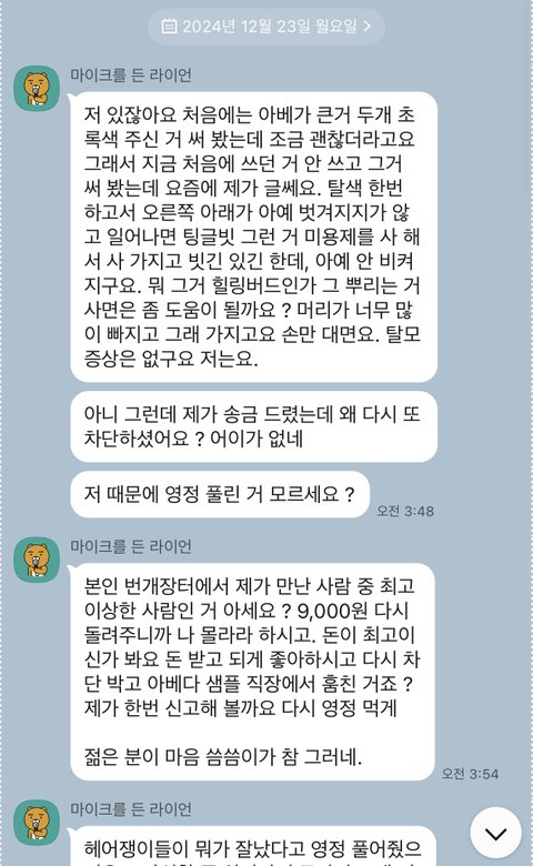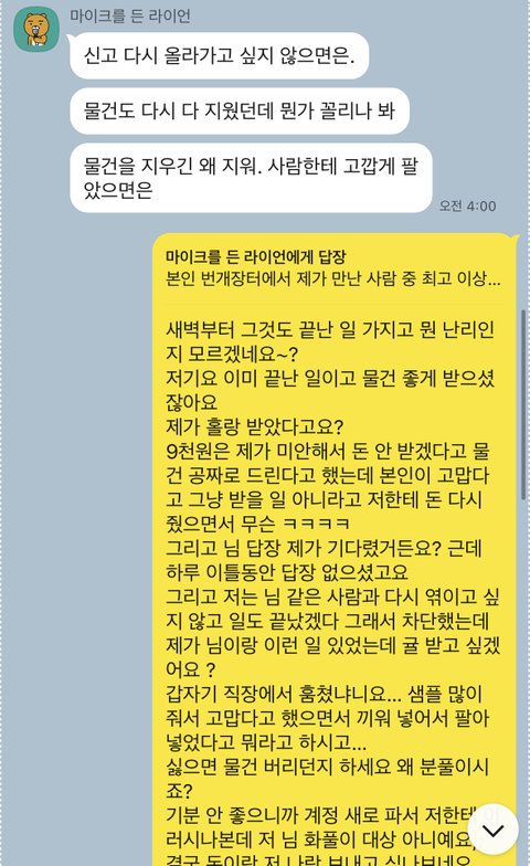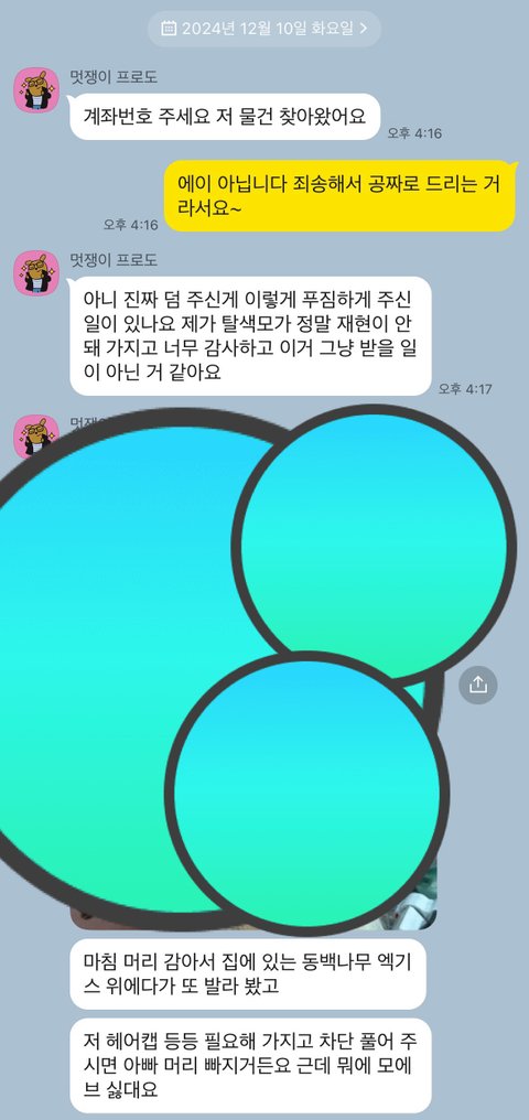 저 아줌마가 물건 공짜로 받기 그렇다고 환불해준 돈 다시 돌려주고 끝냈는데도 또 카톡 계정 하나 파서 달라고 난리를 칠 지 예상했겠습니까?