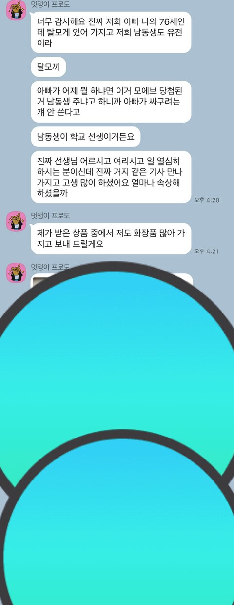 근데 헤어 에센스랑 덤 사용해보시고 너무 좋다고 그냥 물건 받을 일 아닌 것 같다며 저한테