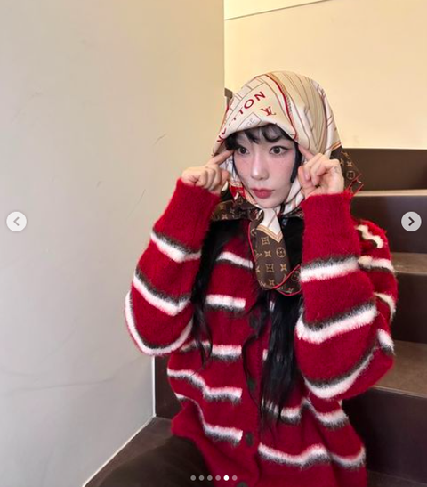 사진 속 태연은 스트라이프 빨간색 니트에 명품 브랜드 L사 스카프를 두른 모습을 담았다. 이른바 지드래곤이 유행시킨 보자기 패션을 선보인 태연은 귀엽고 사랑스러운 매력을 뽐냈다.