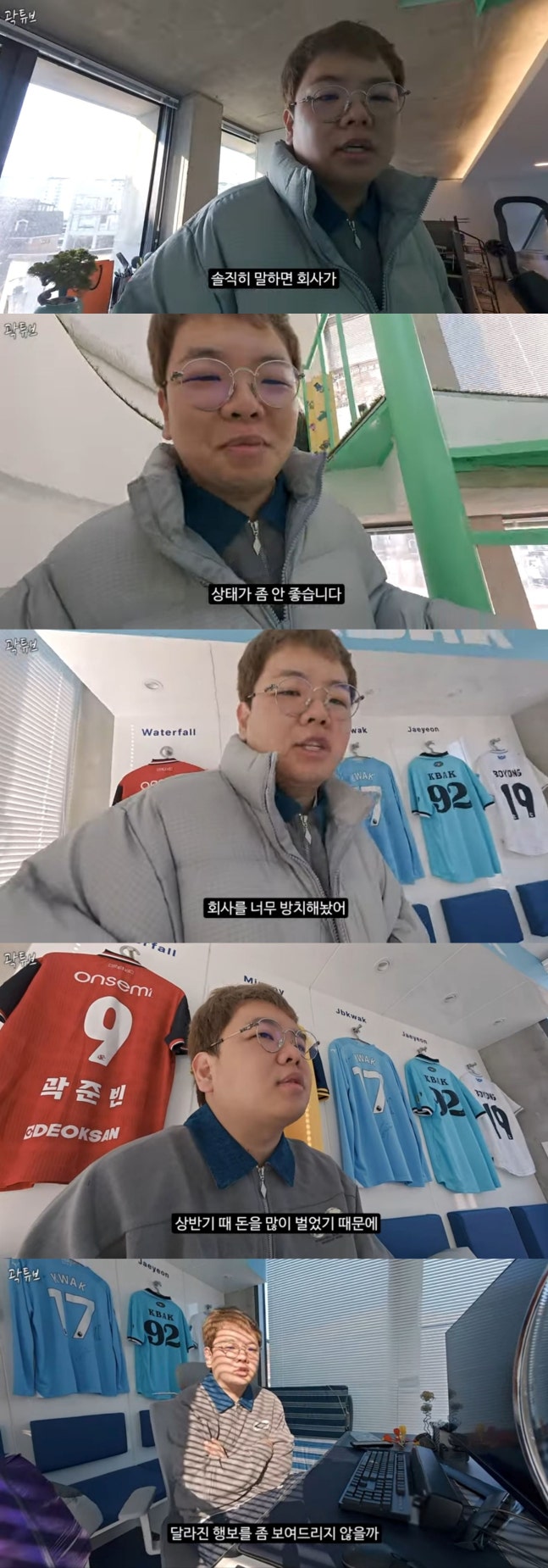 이어 곽튜브는 "솔직히 말하면 회사가 상태가 좀 안 좋다. 회사를 너무 방치해놨다"고 털어놓더니 벽에 걸린 3명의 소속 크리에이터를 둘러봤다.