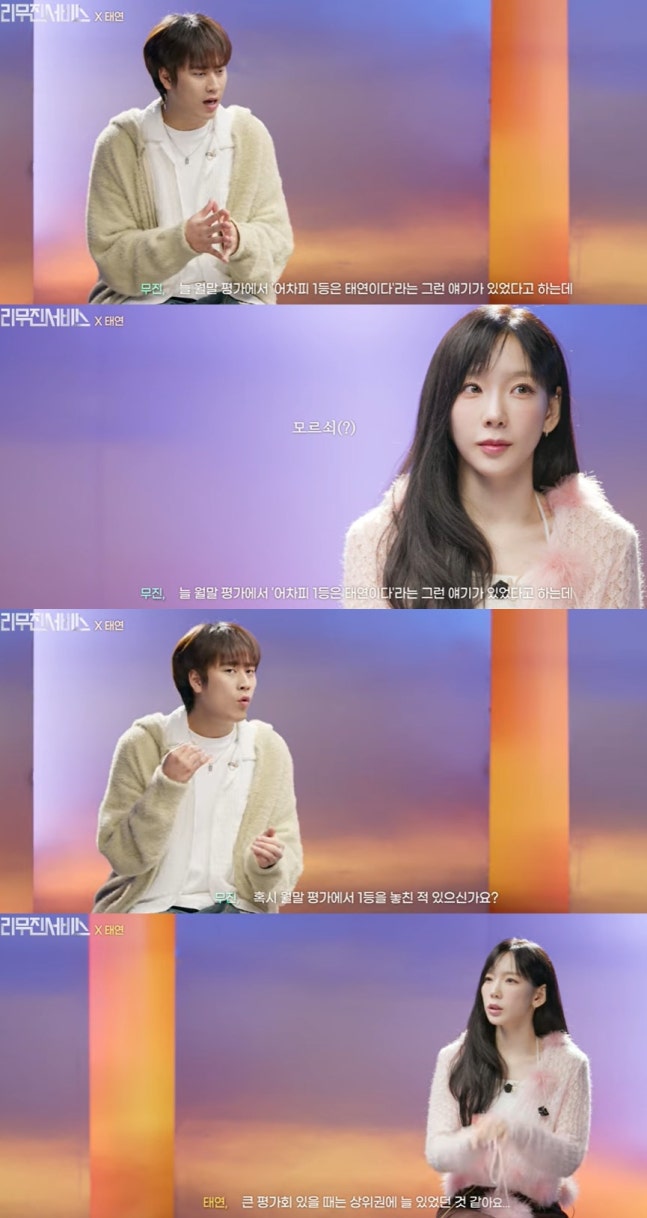 월말 평가에서 1등을 놓친 적 있냐는 질문에 태연은 "큰 평가회 있을 때는 상위권에 늘 있었다"고 담담한 여유를 보였고, 이무진은 "진짜 멋있다. 진짜 멋있는 것 같다. 본인이 말씀하시는 거 보면 가볍게 말씀하셨지만 SM에서 상위권이라는 건 정말 대단하다"며 존경심을 보였다.