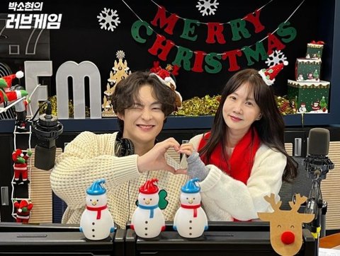 사진에는 박소현이 이날 ‘러브게임’ 스페셜 DJ로 함께한 송건희와 다정하게 포즈를 취하고 있는 모습이 담겼다. 박소현과 송건희는 크리스마스 분위기가 물씬 풍기는 스타일링과 소품으로 커플샷을 찍었다.