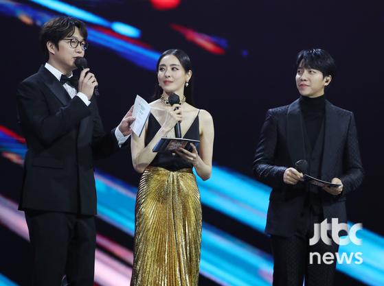〈제36회 골든디스크어워즈〉에서 진행을 맡은 성시경, 이다희, 이승기(왼쪽부터). 사진=골든디스크어워즈 사무국