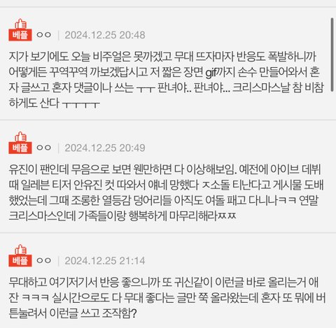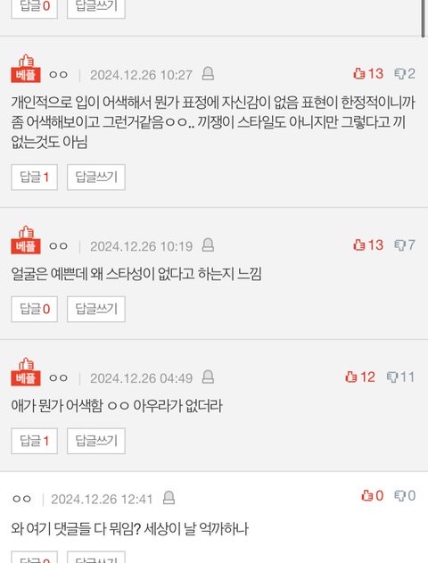 얘네팬들은 맨날 카리나 까인다고 하는데 보면 카리나는 다 쉴드에 찬양댓만 있고 다른돌들은 그런댓 하나도 없더라 신기함