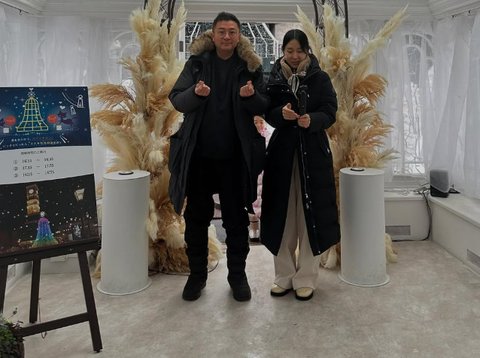 사진 속 이지혜는 일본 삿포로 여행 중에 남편 문재완과 포즈를 취하는 모습이다.