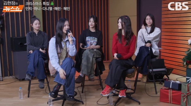 민지, 하니, 다니엘, 해린, 혜인 등 뉴진스 5인 멤버는 CBS '김현정의 뉴스쇼'에 지난 25일 오전 출연했다. 이날 해당 쇼 MC인 김현정은 뉴진스라는 그룹명은 언급하지 않은 채 "크리스마스 선물처럼 찾아온 다섯 명의 천사들. 민지, 하니, 다니엘, 해린, 혜인"이라며 멤버들을 소개했다.