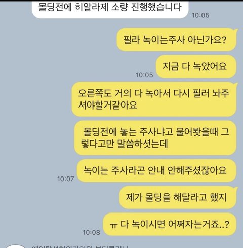다시 몰딩해준다해서 내원했는데 필러를 몰래 녹였어..