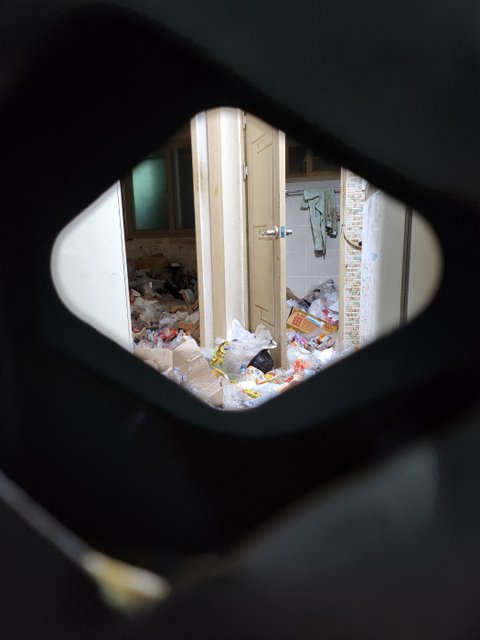 그때 관리자는 옆옆호실이 집을 치우지 않아 냄새가 나는 것이라고 하는겁니다!!!! 문손잡이도 떼어버렸다고 하더군요... 바로 달려가서 그 호실에 문손잡이가 없어진 구멍으로 안을 들여다봤는데 엄청난 충격이었습니다. 과장없이 방전체가 종아리 높이의 쓰레기로 가득 차있었고 온 벽지가 까맣게 썩어있으며 냉장고는 녹이 슬어 페인트껍데기가 벗겨지고 있었고 가구 또한 하이글로시가 다 덜렁덜렁해져있더군요. 냄새가 굉장히 심했던 날은 그 사람이 그 곳을 지나간지 얼마안됐을때 였고 평소에 나는 냄새는 그냥 그 문손잡이가 있던 구멍으로부터 흘러나오는 일상냄새였습니다.
