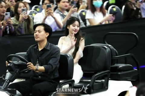 그룹 아이브 장원영이 27일 오후 태국 방콕 임팩트 챌린저 홀 1-2(IMPACT Challenger Hall 1-2)에서 열린 '제 9회 아시아 아티스트 어워즈'(The 9th Asia Artist Awards')' 레드카펫 행사에 버기카를 타고 팬들과 인사를 나누고 있다.