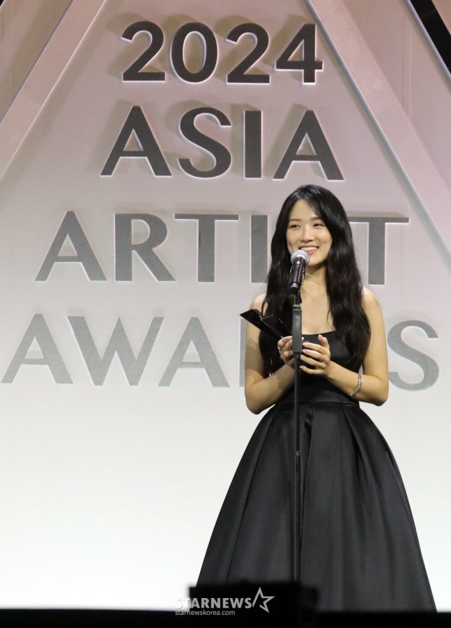 배우 김혜윤이 27일 오후 태국 방콕 임팩트 챌린저 홀 1-2(IMPACT Challenger Hall 1-2)에서 열린 '제 9회 아시아 아티스트 어워즈'(The 9th Asia Artist Awards')' 에서 AAA Popularity 상을 수상하고 소감을 말하고 있다. 2024.12.27 /사진=임성균 tjdrbs23@