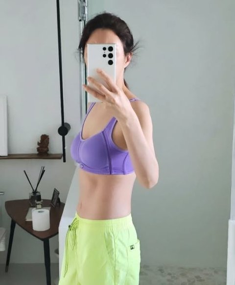 공개된 사진에서 김완선은 군살을 찾아볼 수 없는 복부를 자랑하고 있다. 철저한 자기관리가 돋보인다.