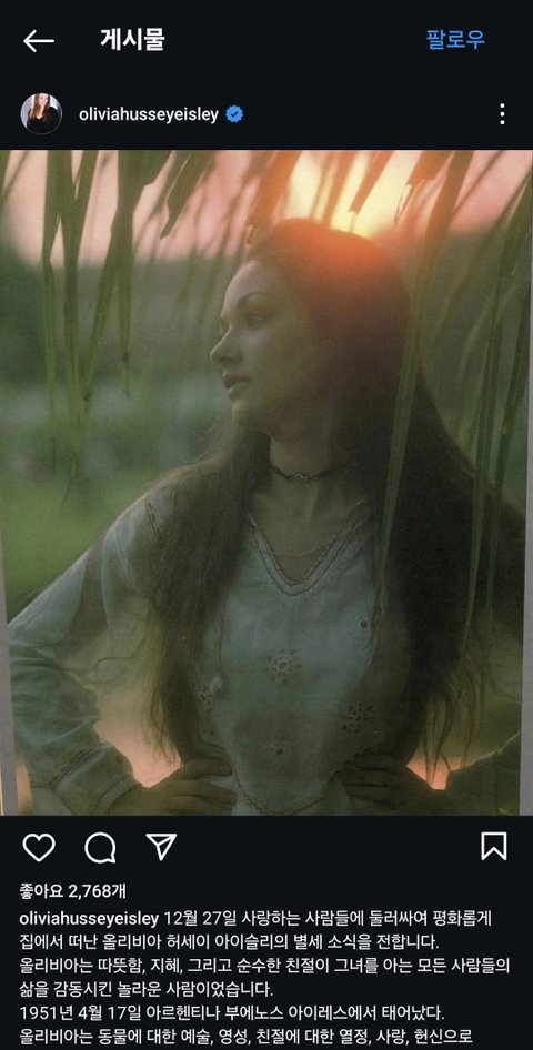 진짜 이런거보면 인생에서의 찬란했던 순간은 한순간처럼 지나가는 것 같다 그렇지만 평생 모두의 기억에 인상깊게 남을 정도로 찬란했기에 앞으로도 올리비아 핫세처럼 얼굴도 마음도 모두 예쁜 절세미인은 없을 듯…