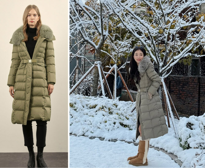 사복 패션으로 주목받는 배우 기은세도 지난달 말 눈 오던 날 자신의 SNS에 올리비아 로렌의 ‘폭스 벨티드 롱 다운’ 제품을 입고 눈을 즐기던 사진을 올렸다.