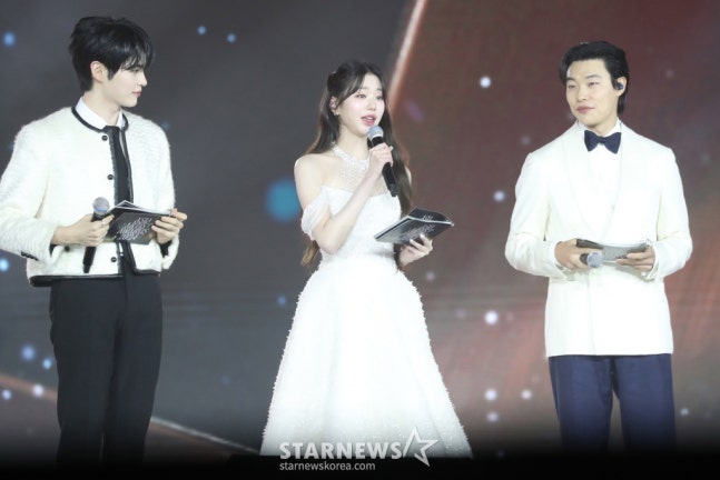 성한빈, 장원영, 류준영이 27일 오후 태국 방콕 임팩트 챌린저 홀 1-2(IMPACT Challenger Hall 1-2)에서 열린 '제 9회 아시아 아티스트 어워즈'(The 9th Asia Artist Awards')' MC로 인사를 하고있다. 2024.12.27 /사진=임성균 tjdrbs23@류준열은 함께 호흡을 맞춘 장원영과 성한빈에 대해 "정말 진행을 잘하더라. 교과서 같은 친구들이다. 저에게 잘 알려주기도 했고, 제가 농담하면 웃어주면서 저의 긴장을 풀어줘서 고마웠다"며 "나보다는 MC로서 선배이니, 나도 배우려는 자세로 함께 호흡했다"고 밝혔다.또한 류준열은 'MC로서 적성을 찾은 것 같냐'는 질문에 "에이, 왜 그러시냐"고 웃으며 "새로운 도전은 항상 설렌다"고 말했다.