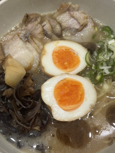 보쌈과 장조림은 라멘을 먹기 위한 빌드업이었을 지도…ㅋㅋㅋ 생목이버섯 살짝 데치고 파 쫑쫑 썰고 계란 아지타미고였나 무튼 그거 만들고 남은 장조림 국물에 수육 남은 거 잠깐 넣어두면 차슈 완성이야! 얇게 썰어서 토핑으로 왕창 올려주면 오레노라멘보다 맛있어!