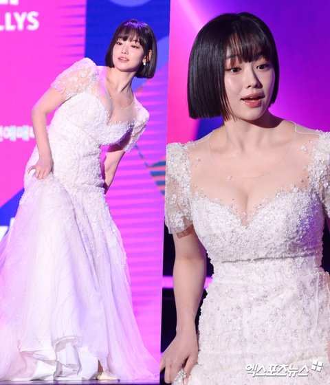 이날 레드카펫 행사에 참석한 배우 강미나가 포토타임을 갖고 있다.