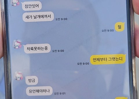 A씨가 이날 오전 9시쯤 해당 여객기에 탑승한 B씨를 통해 받은 문자 메시지에는 "새가 날개에 껴서 착륙을 못하는 중"이라는 내용이 담겨 있다. 이어 "착륙하지 못하는 중"이라는 글은 남긴 후 "유언해야하나"라는 글을 추가로 남겨 안타까움을 자아냈다.