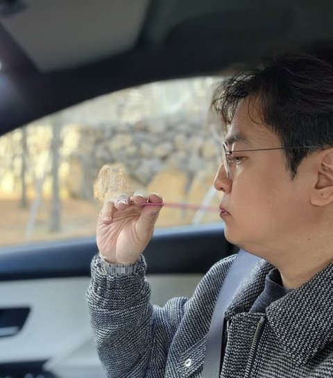 사진 속 최동석은 차 안에서 영양제 먹는 데 집중한 모습이다.