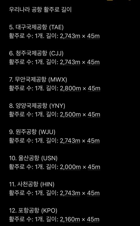 ? 활주로 길이가 뭐가 짧아. 전국에 철새 다 돌아다니고.