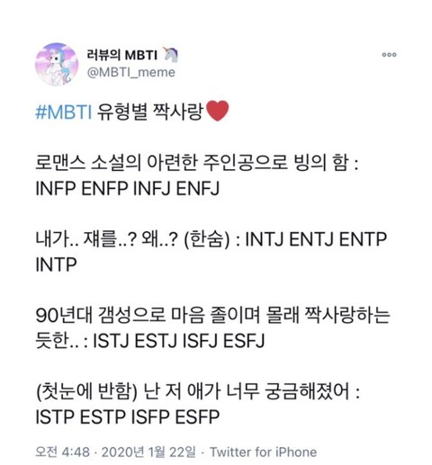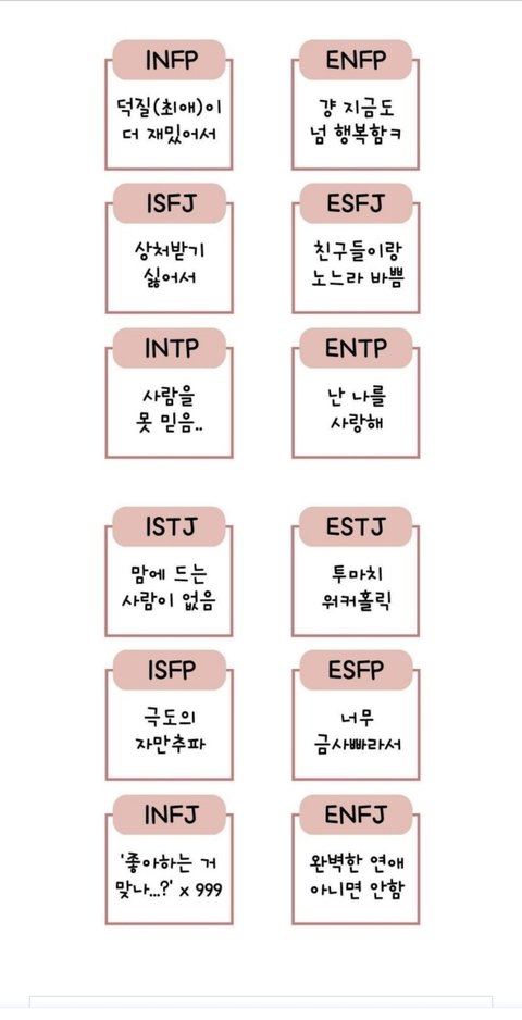 MBTI별 연애이모저모