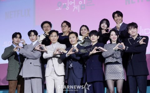 배우 양동근(왼쪽 위 시계방향), 이서환, 강애심, 조유리, 위하준, 강하늘, 박규영, 임시완, 이병헌, 이정재, 박성훈, 이진욱이 9일 오전 서울 중구 동대문디자인플라자에서 진행된 넷플릭스 시리즈 '오징어 게임 시즌2' 제작발표회에 참석해 포즈를 취하고 있다. '오징어 게임 시즌2'는 복수를 다짐하고 다시 돌아와 게임에 참가하는 '기훈'(이정재)과 그를 맞이하는 '프론트맨'(이병헌)의 치열한 대결, 그리고 다시 시작되는 진짜 게임을 담은 이야기다. 오는 26일 공개. 2024.12.9 /사진=김창현 chmt@