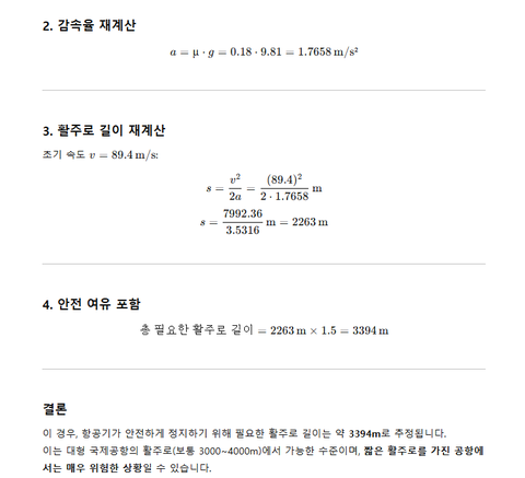 벽돌구조로 부숴지기 쉬운 외벽을 뚫고 추가활주로의 철망과 조명들과 연속적으로 충돌하면서 AI가 계산한 3.4km보다 짧은 거리에 멈춰설 수 있지 않았을까? 라고 조심스럽게 예측 해 본다.