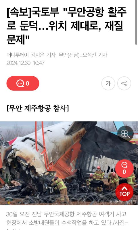 그래서 저 노란 동그라미 둔덕과 그위에 콘크리트벽이랑 그위에 설치된 로컬라이저에 부딪히면서 비행기 폭바됨.