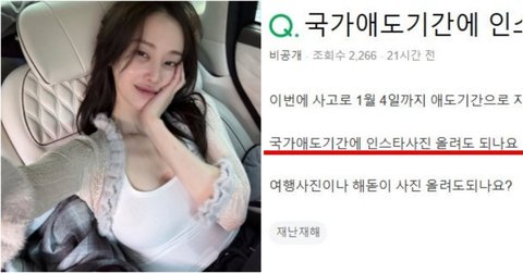 "인스타그램 스토리를 올렸는데 국가 애도 기간에 '뭐하냐'는 DM(다이렉트 메시지) 받음요."회원 수 112만 명인 한 네이버 카페에는 지난 30일 이 같은 내용이 담긴 글이 올라왔다. 이 네티즌은 "음식 사진을 올렸는데 친구에게 '국가 애도 기간인데…'라는 답장이 왔다"며 "연락을 받고 게시물을 삭제했다"고 적었다.