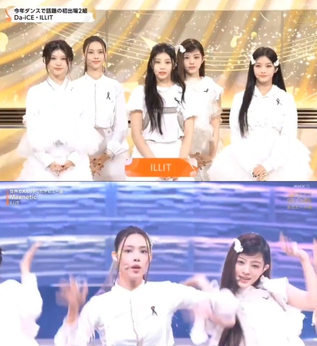(엑스포츠뉴스 김수아 기자) 그룹 아일릿(ILLIT)이 일본의 연말 음악 프로그램에 검은색의 추모 리본을 달고 무대에 올랐다.
