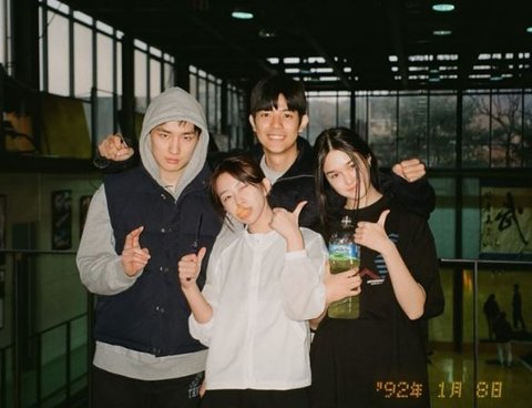 공개된 사진 속 윤가이는 '가족계획'에 함께 출연한 배우 로몬, 이수현 등과 옹기종기 붙어 포즈를 취하고 있다.