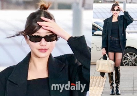 공항 패션이 눈길을 끌었다. 올블랙 롱코트에 쇼트 팬츠 그리고 쇄골라인이 드러난 티셔츠로 시크한 분위기를 연출했다. 특히나 허리에 손을 올리며 화보 같은 포즈를 취하는 등 해질녘 밤 조명과 어우러지며 또 하나의 레전드 패션을 경신했다. 현장에선 "언니 사랑해요", "언니 오늘 최고야" 등의 환호성이 터져 나왔다.김도형 기자(circle@mydaily.co.kr)