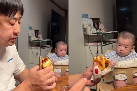 영상에서 강재준은 아기 의자에 현조를 앉히고 햄버거를 먹는 모습이다. 먹음직스럽게 먹방을 이어가던 강재준은 현조에게 줄 것처럼 장난치고, 현조는 아빠를 빤히 바라봐 웃음을 자아낸다.