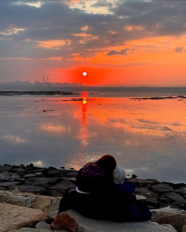 이와 함께 공개된 사진 속 이시영이 아들과 함께 바다 일출을 보러 간 모습이 담겨있다. 막 떠오르는 태양을 바라보고 있는 이들 모자의 뒷모습이 훈훈함을 자아낸다.