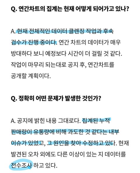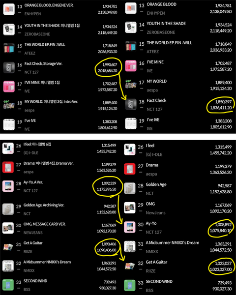 판매량 정정돼서 오히려 판매량 더 높게 측정된 앨범도 있고 더 줄어든 앨범도 있다는 거 같은데 현재까지 판매량 줄어든 앨범은 공교롭게도 다 슴 앨범이네