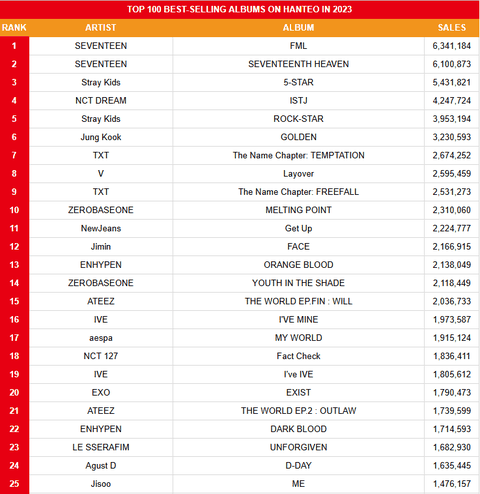 2023 한터차트 앨범판매량 새로 올라옴