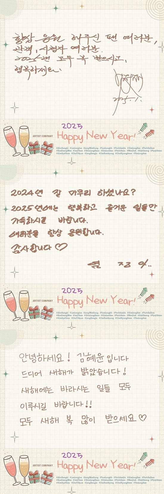 소속사 아티스트컴퍼니 측은 1일 새해를 맞이해 소속 배우들의 새해 인사를 공개했다.