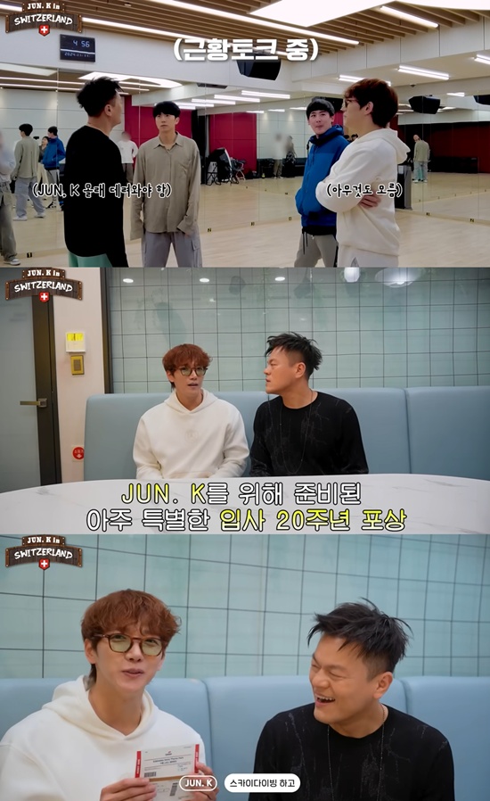 최근 2PM 공식 유튜브 채널에는 'JUN. K의 스위스 여행기 1편 | JYP 아티스트 시청 요망 장기근속하면 벌어지는 일'이라는 제목의 영상이 업로드됐다.