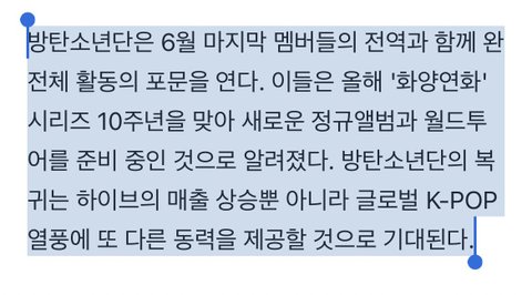 정규앨범 미친ㅠㅠㅠ 온때 생각난다 서포트 ㅈㄴ 빡세게 할꺼야 해외 팬베도 돌아왔고 그때 쉬었던 팬들 돌아올듯 얼마 안남음 호석이 투어 끝나면 애들 나온다
