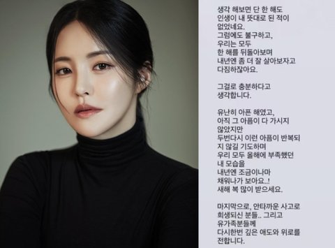 그러면서 남유정은 제주항공 여객기 참사를 언급하기도. 유정은 "유난히 아픈 해였고, 아직 그 아픔이 다 가시지 않았지만 두 번 다시 이런 아픔이 반복되지 않기를 기도하며 우리 모두 올해에 부족했던 내 모습을 조금이나마 채워나가보자"고 따뜻한 위로를 건넸다.