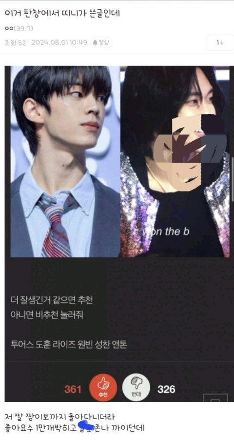 베플이거였는데 순식간에 원빈까는사진이랑 찬반까지 조작