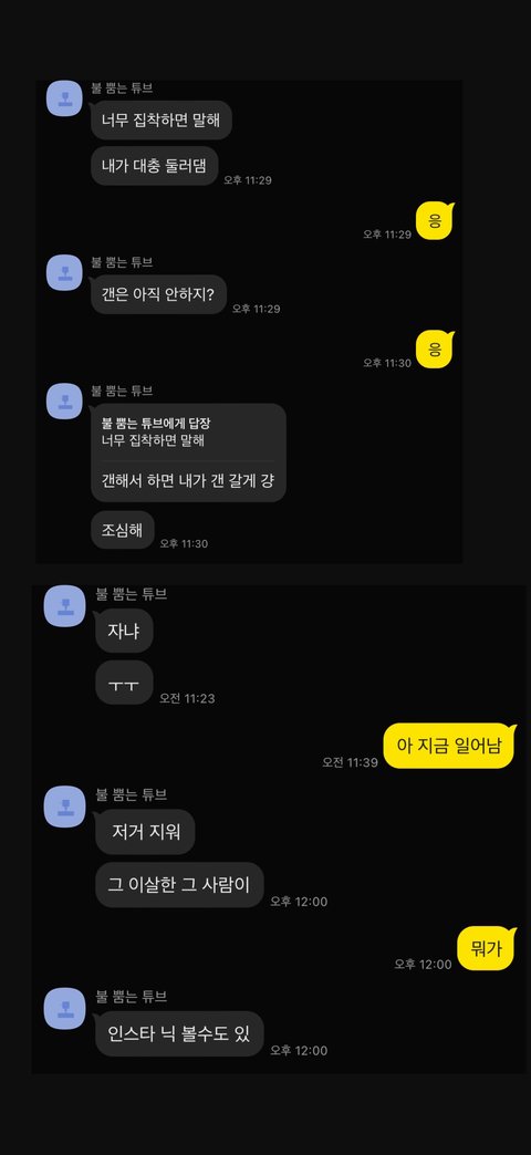 이상한 사람한테 디엠왔을 때 신경써주고 걱정해줌
