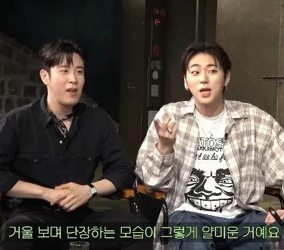 춤 연습은 안 하면서 거울 보고 치장이나 하고 있으면