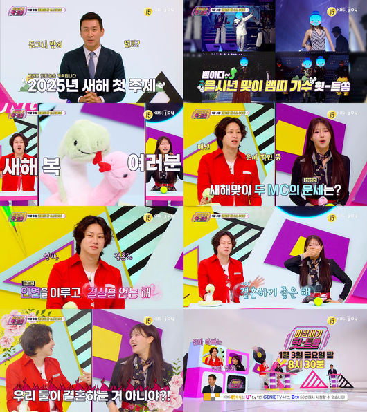 3일 방송되는 KBS Joy ‘이십세기 힛-트쏭’ 김희철은 '인연을 이루고 결실을 보는 해'라며 '연인들은 결혼하기에 아주 좋은 해'라고 언급해 결혼에 대한 기대감을 높인다. 여기에 이미주는 '올해 인생에 있어 중요한 사람을 만나게 되며, 그 사람으로 인해 큰 빛을 보게 된다', '새롭게 만나는 사람 중에 좋은 인연이 있다', '결혼을 계획하는 이성이 있다면, 결혼의 시기도 비교적 좋은 해'라고 공개되자 김희철은 “우리 둘이 결혼하는 거 아니냐”며 흥분한다.