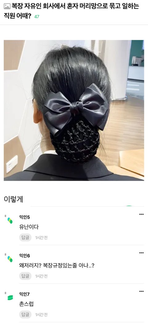 머리망 한다고 욕먹지는 않을듯 근데 꼰대가 머리망 넘 좋다면서 다른 여자 직원들한테도 머리망 하라고 강요하면 원글이 회사생활 망함