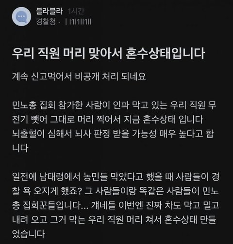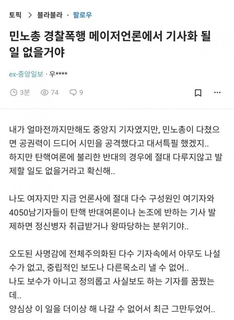 뉴스 기사엔 안뜰거야. 민노총이 언론노조를 거느리고 있으니