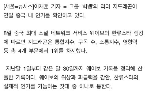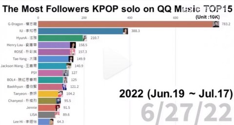 QQ뮤직(중국 최대 음원사이트) 팔로워 수 1위 지드래곤