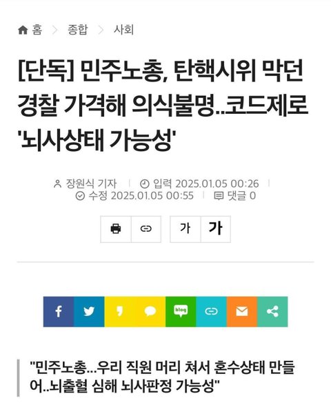 민노총이 경찰 때리는거 영상으로 다 찍혔는데 아니라고 우기면 뭐함ㅋㅋㅋㅋㅋㅋㅋㅋㅋ 원래 깡패집단 ╋ 간부 간첩질하다 잡혀들어간 반국가 세력인데뭐