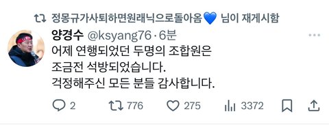 여경 뚜까팬 민노총 석방됨 ㄷ ㄷ