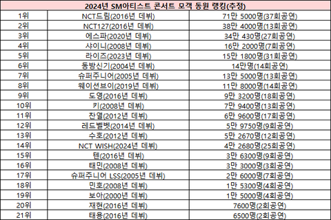 17위 슈퍼주니어LSS 2만 6000명(7회공연)